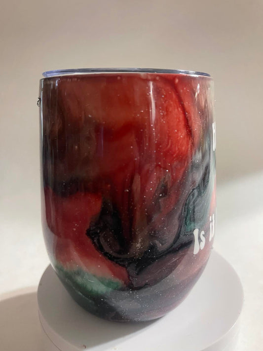 Wine Tumbler 12 oz Christmas HO HO HO IS IT HOT COCOA? Red and Green Swirl