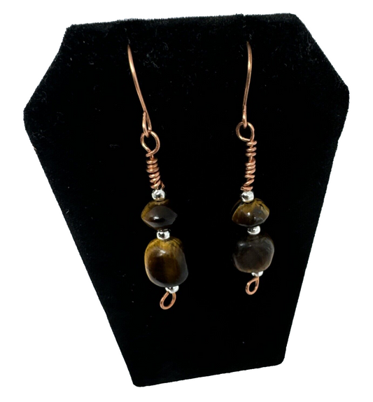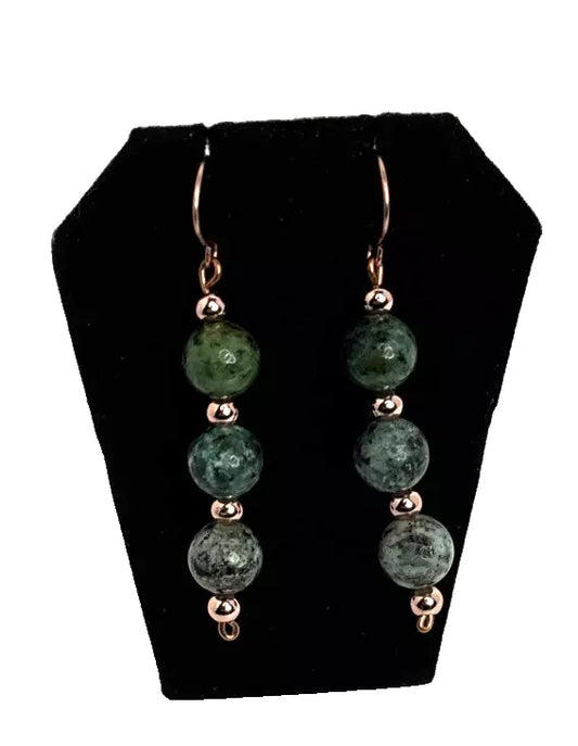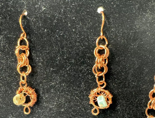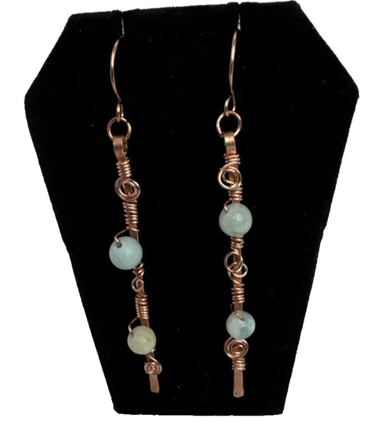 Artisan Crafted Hammered Copper And With Wrapped Amazonite Dangle Earrings Handmade