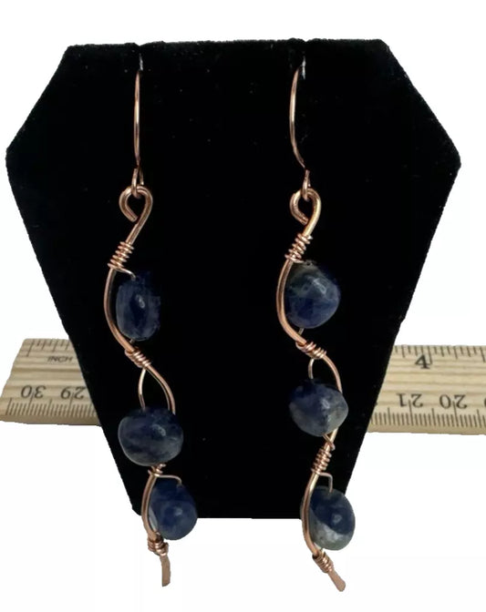 Copper Wave Dangle Earrings with Blue Sodalite Beads The Wave