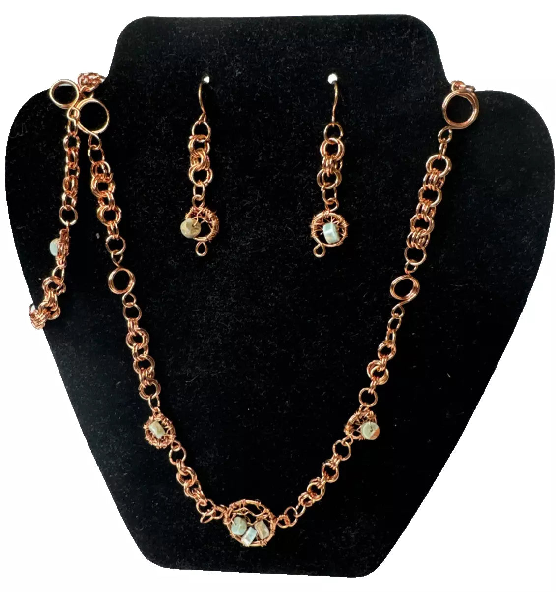 Copper Wire Necklace Earrings And Bracelet Set With Dyed Jasper HandMade
